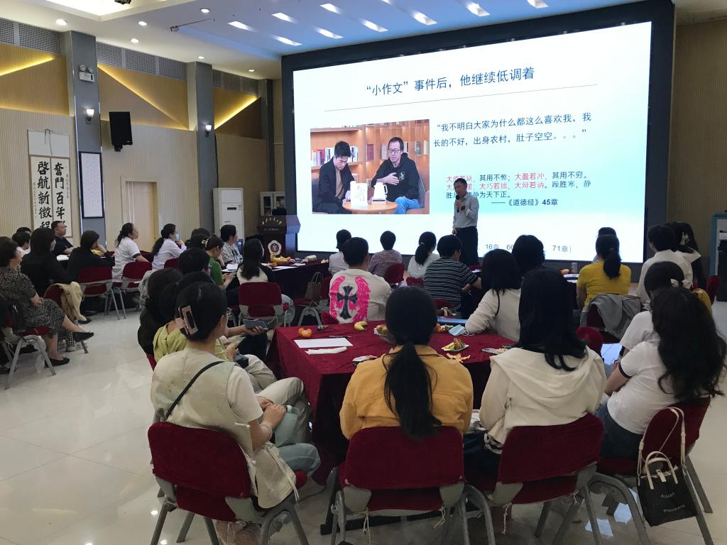 王永军老师通过道德经中的部分章节和语句,结合医务工作者工作和当下学生思想特点,进行了阐释和分享。在如何与人相处中,用“天下之至柔,驰骋天下之志坚”、“人之生也柔弱,其死也坚强”来讲格局;用“多言数穷,不如守中”来讲耐心;用“合抱之木,生于毫末;九层之台,起于累土。”来讲持之以恒;用“图难于其易,夫轻诺必寡信”来讲沉稳专注;用“曲则全,枉则直,洼则盈,敝则新”来讲能屈能伸等。大家在工作和生活中遇到难事应该以什么样的心境来对待,遇到家庭矛盾和孩子教育应该用哪些技巧来处理等等,王老师的讲述声情并茂,贴近现实,在座人员听得津津有味。