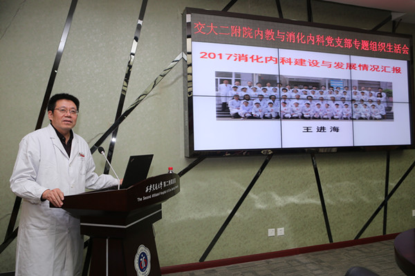 随后,消化内科王进海主任详细介绍了消化内科学科建设与发展情况,重点汇报了学科在医教研等各方面取得的成绩和优势,同时也分析了当前空间不足、人才队伍储备、尖端医疗技术引进等制约学科发展的问题,并提出了具有可操作性、可实现性的学科未来发展规划。