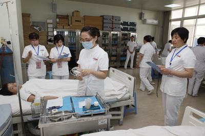 青年护士分成8组参加竞赛
