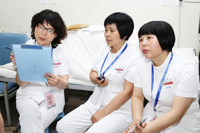 护理部刘红梅副主任、孔德玲副主任在现场紧张的工作