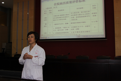 2013年4月18日、25日,医疗质量办公室组织了两次全院《住院病历质量评价标准》专项讲座,并于讲座结束后进行两次病历书写规范考试,全院主治及以下医师共250余人参加,考试合格率为100%,此次会议由质量控制办公室李西英主任主持。