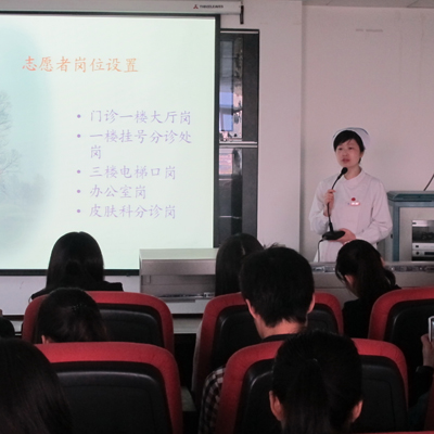 从去年10份开始,学生志愿者每周六、周日早上8点至12点都在门诊为患者做志愿服务,为了提高志愿者的服务水平,给患者提供更好的服务,院团委以后还将定期开展志愿者培训。