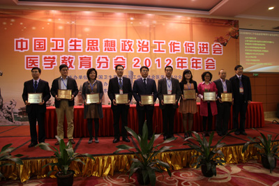 中国卫生思想政治工作促进会是由卫生部主管的国家一级社会团体,专门致力于推动全国卫生系统思想政治工作研究与实践,促进卫生行业精神文明建设的非营利性社会组织。医学教育分会成立于2007年,由北京大学、复旦大学、华中科技大学、哈尔滨医科大学等全国44家医学院(校)组成。我校为中国卫生思想政治工作促进会医学教育分会常务理事单位。本次年会为历年来参会人数最多,覆盖面最广的一次大会,会议紧扣十八大报告提出“立德树人”的要求,围绕“大学文化传承与交流”, 内容充实,思路开阔,成果丰富,共表彰了20家2012年卫生文化建设先进单位、39位优秀学生辅导员。我院为西北地区仅有的两家获表彰单位之一,另一家为新疆医科大学公共卫生学院。