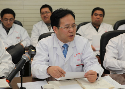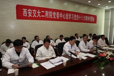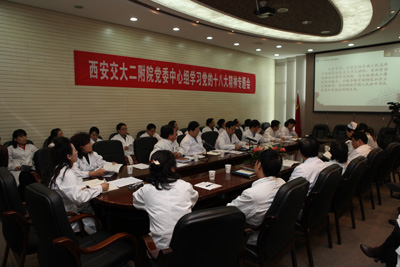 院长贺西京带领与会人员学习了中国共产党第十八次全国代表大会关于《中国共产党章程(修正案)》的决议,并围绕十八大报告提出的要做好人民健康服务的要求,结合我院实际重点讲了三个方面。
