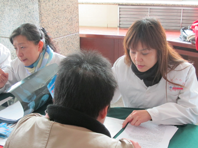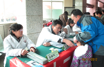 早上7点,支部的党员同志与义诊专家在支部书记王丽娟主任和门诊办吴世学主任的带领下历时3个多小时到达商洛市中心医院,虽然天气严寒,而且还下了雨,但大家为病患服务的热心高涨,我院专家们下车后立即投入到认真的接诊工作中。由于义诊活动之前,党支部作了充分的前期准备工作,商洛市中心医院配合进行了广泛宣传,义诊得到当地老百姓的热烈欢迎。在商洛市中心医院的大力配合下,我们针对不同病患在商洛市中心医院门诊大厅设立了义诊台以及关于医保的相关咨询处,通过采取现场咨询接诊,免费测血压,宣传展板、宣传单等形式,向广大病患群众传授卫生健康知识,为群众免费体检治病。一大早医院门诊大厅里人潮涌动,各临床专科的专家为广大患者提供全方位、高质量的诊疗、咨询服务。支部党员同志配合专家义诊在门诊大厅发放我院的宣传手册,并下达相关病房科室发放宣传材料。当地的老百姓对专家们的义诊活动赞不绝口,所有义诊专家同党支部党员同志工作情绪高涨,精神饱满,没有休息片刻,一直热情细致地接待着每一位咨询就诊的病患,让病患不用挂专家号就能享受名医、专家的服务。