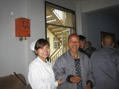 上午十点,我们按计划到达了敬老院,那里居住着百余名孤、寡、残疾老人,郑国玺教授、吴彩芹总护士长亲自为老人讲解耳鼻喉科常见疾病、做头颈部检查、测量血压,陪老人聊天,询问老人的身体和生活状况等。老人们对耳鼻喉科一行的到来表示热烈欢迎,个个喜笑颜开,感谢耳鼻喉科人员为他们送来了温暖。有的老人看到大医院的医护人员到来,感动地留下了泪水,他们激动的说“共产党对我们这么好,我们有愧啊!我们不能再麻烦你们!” 敬老院还有几位老者感谢道:“多谢你们来看望我们这些老人,看到你们我们很开心啊!”在那里,耳鼻喉科医护人员一行用实际行动践行了敬老、爱老的优良传统,与老人们共同营造了一幅其乐融融的温情画面。