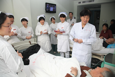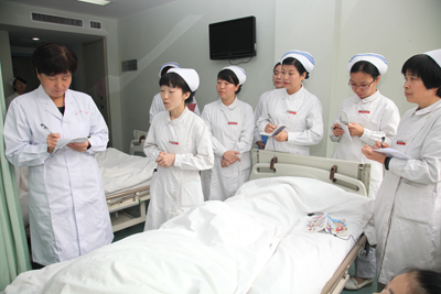 按优质护理专家组的安排,随机选择心血管内科及普通外科为重点检查科室,专家在两个科室分别查看了护理管理相关资料及其在临床中的落实情况,包括护理人力资源配置、排班模式、护士岗位、分层使用、绩效考核管理、“医护全程诊疗模式”及“健康教育互动模式”等,并分别在两个科室抽查了4名患者的整体临床护理服务,从责任护士对患者的评估、病情变化、治疗方案、护理措施及健康教育一一进行考评,并深入与患者交谈,进行满意度调查,从侧面了解护理工作的内容及质量。随后专家组在护理部查阅了医院优质护理服务的组织领导、实施方案、护理管理体系、发展规划、护理工作规章制度、常用临床护理技术服务规范等相关文件,重点查阅了护理岗位、分层使用及绩效考核的制度及实施记录等。根据专家检查后的现场反馈,我院的整体护理工作、创新管理办法、“医护全程诊疗模式”及“健康教育互动模式”等工作均按照卫生部相关要求执行,取得显著的成效,在我省处于领先的地位。专家还给我院护理工作提出了有建设性的建议,如应进一步建立患者跌倒、脱管的评估系统。