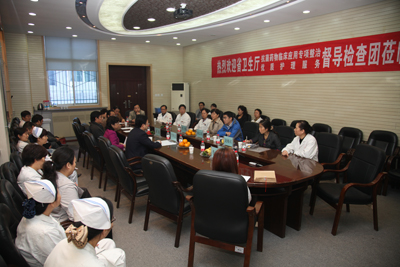 ?10月20日上午,由临床药学、护理学3名专家组成的陕西省卫生厅抗菌药物临床应用专项整治和优质护理服务督导检查组莅临我院指导工作,我院院长贺西京、副院长刘原、副书记黎一鸣及医务部、院办、党办、药剂科、护理部、感染办,信息网络部、宣传部、保卫部等部门主任和部分临床医技科室主任热情迎接各位督导专家的到来。