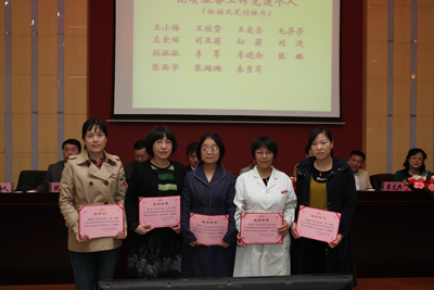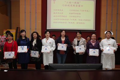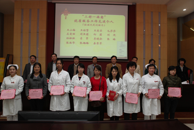 巩守平副书记宣读了《关于表彰“管理创先 服务争优”岗位技能大赛优秀个人的通知》、高亚副院长宣读了《关于表彰门诊优质服务窗口和优质服务工作先进个人的通知》,全体院领导为获得荣誉的先进集体和个人颁奖,并向他们表示祝贺。