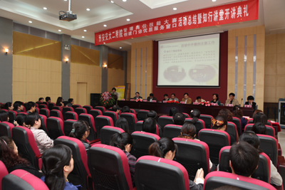 10月25日下午,我院党委在多功能厅举行“知行讲堂”开讲典礼和首场讲座。院党委书记韦俊荣、院长贺西京、副院长李宗芳、李文典、高亚、刘原、党委副书记巩守平、黎一鸣、总会计师谢丹出席典礼,党政后勤管理科室全体职工、门诊服务窗口相关科室负责人和医务人员近200人参加了本次开讲典礼。典礼由党委办公室主任党变玲主持。