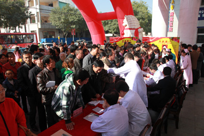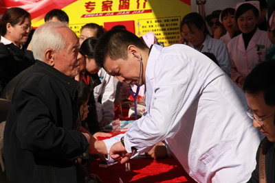 揭牌仪式后,我院专家和教授在延大附院大门前参加了“携手共进 同创未来”大型义诊活动。专家们认真细致地为慕名而来的数百名群众义诊,检查分析病情,并给出合理的诊疗建议。