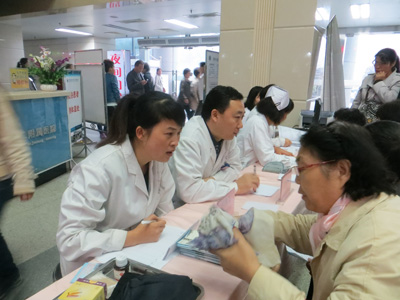 义诊现场热闹非凡,很多患者听到义诊的消息,上班之前就早早在门诊大厅等候。张巧俊教授、乔鸿飞副教授、袁海峰主治医师,护士李艳、李坤颖,研究生张李娜等医务人员耐心细致地为每位前来问诊者详尽检查、回答他们提出的各类问题,并根据具体病情制定具体预防及治疗、康复训练方案。本次义诊共接诊患者近百人,发放脑卒中防治健康知识材料200余份。同时,为便于大家了解脑卒中防治知识,义诊现场摆放了科室精心制作的脑卒中防治知识宣传展板,介绍了脑卒中的危险因素、防治措施、如何早期发现卒中、卒中后怎么办等等问题,使广大群众受益匪浅。