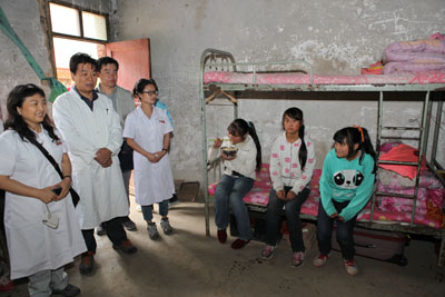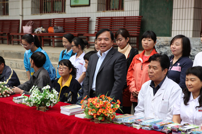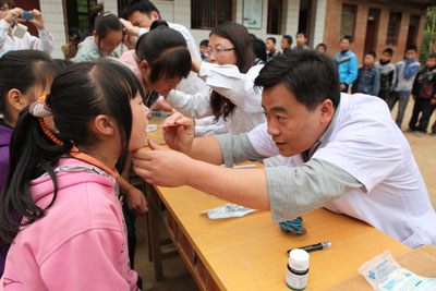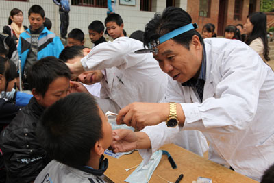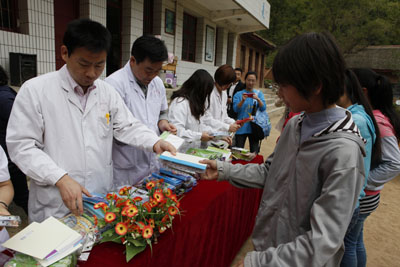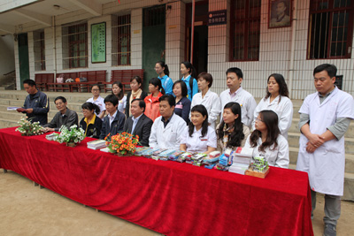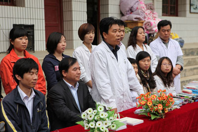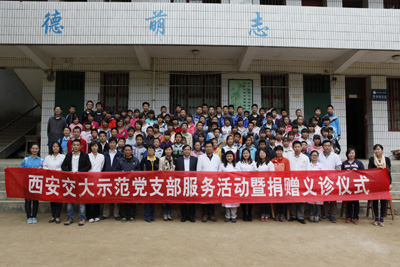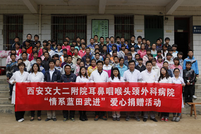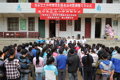 10月11日,耳鼻咽喉头颈外科病院党支部书记郑国玺组织带领科室党员代表,联合交大唐仲英爱心社的志愿者们对蓝田县武进中学的学生们进行义诊和捐赠活动。