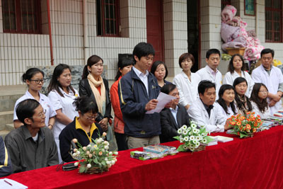 在捐赠仪式上,我支部把科室捐献的现金、文具用品和衣物送给孩子们,爱心社也捐赠了保暖、舒适的被子,希望这些物品和我们的爱心能一起帮助孩子们抵御冬天的严寒。学生代表做了发言,表示全体学生都会珍惜机会,立志好好学习,走出大山,利用知识摆脱贫困,能成为国家的有用之才。