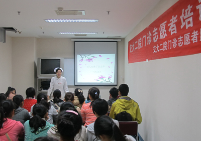 首先,院团委副书记张成基作了题为“志愿服务理念和技巧”的专题讲解,王咏雪副护士长以 “门诊区域的基本情况和志愿服务的注意事项”为题作了详细的介绍。