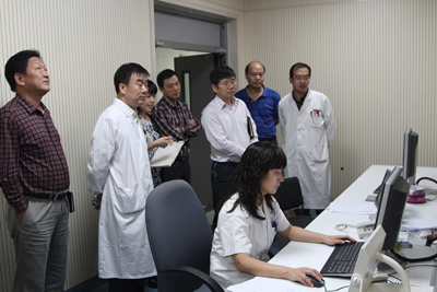 李宗芳副院长一行先到药剂科,在药剂科办公室听取了忤文英主任的工作汇报。忤主任首先对信息网络部近期积极与药剂科沟通了解和解决问题表示感谢,对HIS系统运行过程中药剂科现存问题进行了汇报。李宗芳副院长现场与中航公司对于相关软件开发、运行存在问题以及解决方案进行了沟通交流,提出明确要求:中航公司对于系统出现的一般问题72小时内必须做出答复,并且要定期召开工作会议,提出解决方案。随后,在新大楼负一层影像中心李宗芳副院长一行巡查了大型放射设备的使用情况,对反映的操作间通风问题进行了解,对CT、磁共振、DR、DSA 和数字胃肠机等大型设备进行了仔细的节前安全检查。