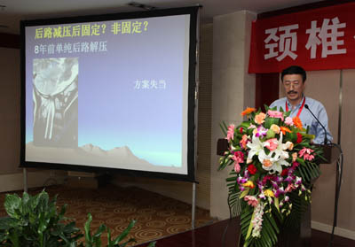 郝定均院长在寰椎弓根钉是否固定方面做出了自己的经验介绍。刘勇教授从基础解剖方面给在座临床医生从不同层次做了详细讲解,使临床医生解剖知识更加系统化。王金堂教授从自己临床经验出发在颈椎手术并发症的处理方面进行了精彩汇报。李浩鹏教授介绍了自己对上颈椎损伤的诊治经验。王栋副教授对上颈椎畸形进行了系统介绍及治疗经验。会议间歇期间全会场医生对本院骨科提供的疑难病例进行了激烈讨论。