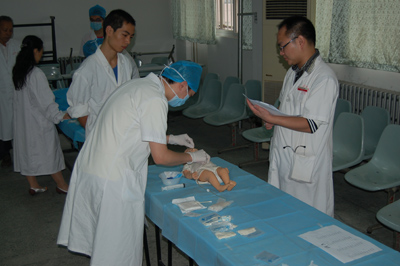 为了加强医学生操作技能,我院教务部根据实习计划,于9月21日至23日进行了本年度第一轮大出科考试,2007(7)、2008(5)年制全体实习学生96人参加了考试。