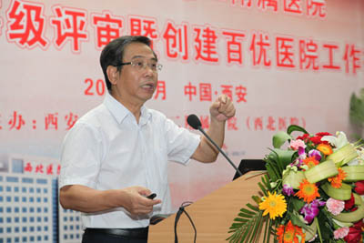 9月15日,我院2012年医院等级评审暨创建百优医院工作推进会议在南院大礼堂召开。卫生部医疗服务监管司张宗久司长、卫生部医疗服务监管司评价处刘勇处长、卫生部评价中心张振伟主任、厦门大学附属中山医院张振清副院长、山东大学第二医院等级评审办公室司春峰副主任莅临我院并做了关于创建优质医院及医院等级评审的专题报告,陕西省卫生厅副厅长黄立勋、西安交通大学副校长闫剑群教授应邀参加了会议并作了重要讲话。