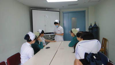 初赛结束之后,监考的护士长和监考老师就每个人的问题给予当场指正并就一些操作细节予以指导。为了达到更为良好的效果,9月5日上午复赛的人员在心血管内科示教室由“吕亚瑞”给其进行赛前示教,让大家更为感动的是,原本只是模拟,但大家争先恐后的争当患者,只为更加逼真,更好地示范,完全的投入。示教后王蓉护士长和秦小金护士长对选手们分别进行点评,大家对于有疑问的地方进行了激烈的集体讨论,为决赛做好了充足的准备。