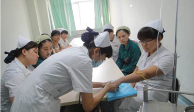 护理部7月份下发“威高杯”安全静脉留置针的通知,接到通知后心内科积极准备,制定了详尽的日程安排。整个竞赛分三阶段进行。第一阶段全员参与,各病区在教练的指导与带动下自行练习;第二阶段产生初赛选手阶段,各病区通过人员练成情况采用自荐与推荐并举的方式选拔出初赛人员共计18人,参加科室初赛;第三阶段科室初赛,选拔出参加护理部复赛的8名人员。