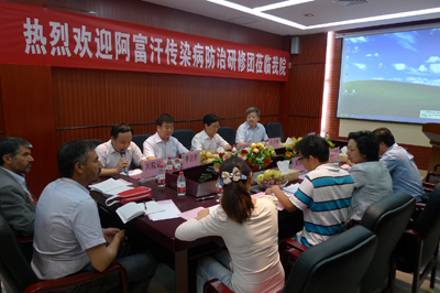 为配合我国总体外交工作,卫生部举办阿富汗公共卫生高级官员研修班,8月24日下午,由阿富汗卫生部卫生保健部门官员YOUSEFL带队的阿富汗政府官员、国家医院医疗培训专家、喀布尔医科大学校长等一行25人在卫生部国际交流与合作中心邢高岩副主任、陕西省卫生厅外事处杨保利处长、西安交通大学医学中心王子明副主任的陪同下到我院进行参观交流,会议由我院副院长李宗芳教授主持,医院办公室、医务部、感染科、重症监护室、血液内科等部门及科室负责人参加座谈会。