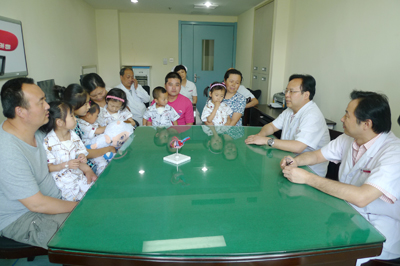 贺西京院长亲临病区看望即将出院的患儿及家属,并表示,此次救助先心病患儿的公益活动,医院派出了最强的医生团队和最好的护理团队,以保证给患儿最佳的治疗效果,医院还会对即将出院的5名患儿做跟踪随访,使患儿彻底恢复到正常状态。费用方面,手术治疗费用除每位明星资助每位患儿的三万元外,其余所有费用均由医院承担。而且医院也将把这项救助先心病患儿的公益活动继续的做下去,使更多的先心病患儿得到及时的救治,还孩子们一个健康的未来。患儿家属对院长及医院表达了最衷心的谢意,同时,也感谢资助了他们孩子的5位明星及爱心组织,并表示一定会好好抚养孩子,教育孩子长大后回报社会,回报人们的爱心。