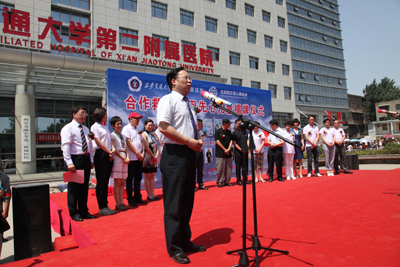 5月30日上午10时,“西安交通大学第二附属医院、屈正爱心网合作启动仪式”在西安香格里拉酒店举行。陕西省政协副主席李晓东,西安交通大学副校长、医学中心主任闫剑群,我院副院长李宗芳、刘原、党委副书记巩守平,北京屈正爱心基金会发起人屈正,以及著名影视明星张嘉译、李琦、苗圃、孙菲菲、倪大红、冯远征、梁丹妮、颜丙燕、杨志刚、吴军,以及我院部分医护人员和人民日报、新华社、光明日报、中央电视台、北京电视台、陕西电视台、西安电视台、西安人民广播电台、华商报、西安晚报、三秦都市报等新闻媒体近200多人参加了当天的启动仪式。启动仪式由中央电视台电影频道瑶淼和北京电视台生活频道高燕主持。