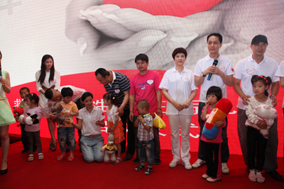 启动仪式上,我院心血管外科的医生护士们和家长们将11名来自陕西宝鸡贫困家庭的先心病患儿带到了现场,与资助他们的12位影视明星和主持人一一见面互动,活动现场气氛十分热烈,使每个人都能感受到浓浓的情意在现场涌动。