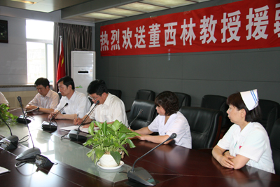 最后,韦书记作总结讲话。他指出,一是我院的专家有着高度的政治责任感、勇于克服各种困难的精神,主动请缨、敬业忘我,取得了受援单位的信任与尊敬,在校内外赚得二院优秀援疆干部的良好口碑,为今后的援疆工作树立了榜样,提供了经验。二是希望董西林教授继承前面援疆干部的优秀传统,化压力为动力,发挥二院人的优点。三是院方和科室对董教授的后盾支持工作务必要及时落实到细节,以实际行动完成党中央的对口援疆计划,反对分裂势力,维护民族统一。