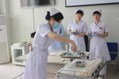 大赛从年初拉开了序幕,自通知下发之时起,护理部及各科室组织三年以下的青年护士进行12项护理基本操作技能(目前已完成的)的再培训和考核。装饰一新的示教室迎来了又一轮培训高潮,很多科室上班忙就利用晚上、节假日休息时间加班训练。4月份各科室组织预赛,有的科室对30余名青年护士,每人进行了12个项目的考核,有的科室反复多次考核层层选拔,全院449名三年以下护士,(除19人因生产、怀孕晚期、疾病原因未参加预赛外),全部参加了预赛,按10%的比例选拔出56人参加复赛(不足10人的科室给1名)。5.3日经过14个小时的激烈角逐17名护士获得了优异成绩,进入决赛,又经过半天的鏖战,10名护士脱颖而出。