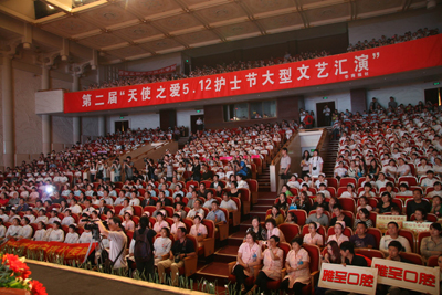 5月12日晚7点,由陕西省卫生厅主办,华商报社承办的第二届“天使之爱”国际护士节文艺汇演在人民剧院举行。来自省内20多家医院的护理工作者,带来了各种文艺节目庆祝自己的节日。陕西省副省长郑小明、省卫生厅厅长刘少明等领导与各院医护工作者代表们一同观看了演出。我院党委副书记巩守平作为本次文艺汇演的特邀评委也出席了晚会。