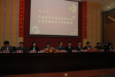 会议在庄严的国歌声中开幕,党委书记韦俊荣首先传达、解读了学校第十二次党代会相关文件和精神,并强调了有关要求。韦书记同时对自3月1日我院启动学校第十二次党代会代表的推选工作以来,院党委所开展的各项工作程序和进程进行了详细的说明。在本次推选工作中,我院各党总支、各支部均高度重视,严格按照程序组织召开支部大会,充分发扬民主,于3月5日认真完成了代表候选人的推选工作。经党委会研究决定并由校组织部审核同意后,我院于3月12日对参加学校第十二次党代会代表候选人进行了为期3天的公示。