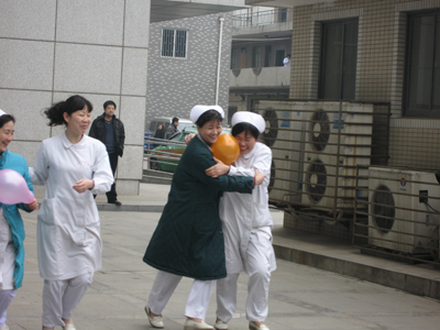 活动中,大家都展现出了工作之外热情、幽默的另一面,每位同事都争先恐后的参与着每一个比赛项目。跳大绳、三人绑腿跑、两人抱气球……这些项目无不需要同事间相互的配合和包容,也体现着门诊部同事间的“姐妹情”、“同事谊”。