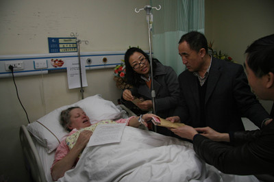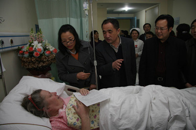 2月6日下午,西安市妇联主席张爱萍、副主席冯莉一行来到我院,看望“南非妈妈”阿曼达,代表西安市全市妇女感谢她多年来的爱心善举,并送上鲜花和3000元慰问金,祝愿她早日康复。张爱萍主席告诉阿曼达女士,她的无私大爱感动了古城人民,在今年年初西安市开展的优秀巾帼志愿者评选活动中,当选为我市“十佳巾帼志愿者”荣誉称号,希望她保重身体,积极配合治疗,早日回到热爱她的孩子们身边,并表示市妇联将会一如既往地关注支持阿曼达和她的爱心公益事业。