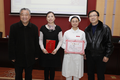 决赛选手们按抽签顺序授课,时间为10分钟。每位选手精心准备,竞赛中发挥出色,各展所长。她们以多媒体课件讲授为主,内容新颖,图文并茂,语言清晰,表达能力强并能灵活运用肢体语言、教学用具等。她们以丰富的专业知识、形式多样、生动流畅的讲解,得到了在场评委及观众的阵阵掌声。经过激烈的角逐,最终泌尿外科张丽获得一等奖,护理部周西、感染科许丽红获得二等奖,神经外科王金娟、重症医学科刘媛媛、内分泌科杨妙妍、中医科王晔、耳鼻喉科吕晖、消化内科刘耕文获得三等奖,其余复赛选手均获得优秀奖。各位领导及嘉宾为获奖选手颁发了获奖证书及奖品,并颁发了优秀组织奖。