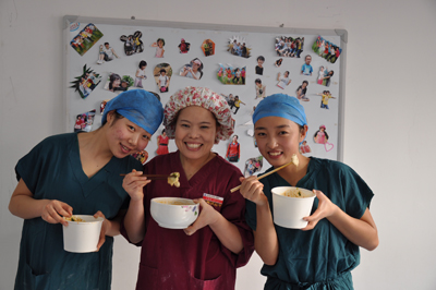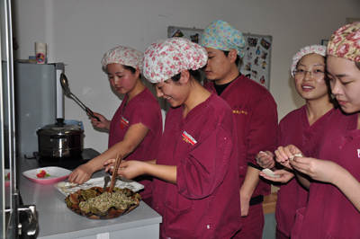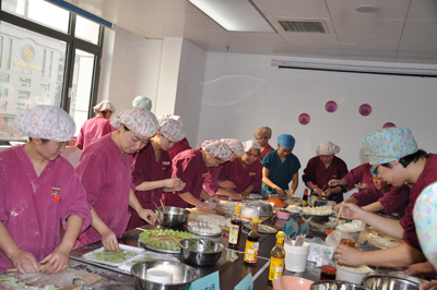 中午12点,消毒供应科在主任司惠君的组织下,全体员工、进修生、实习生齐聚一堂,开开心心举行包饺子比赛。和面的和面,擀皮的擀皮,包饺子的包饺子,调汤的调汤,一切井然有序,欢歌笑语,锣鼓家什齐上阵,仅仅一小时,我们的饺子出锅了。