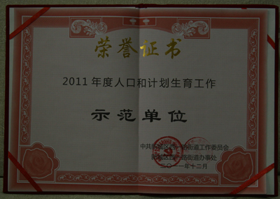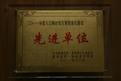 2011年12月29日上午,新城区西一路街办召开西一路地区2011年度人口和计划生育目标管理总结表彰大会,我院获得“2011年度人口和计划生育工作示范单位”、“2011年度人口和计划生育信息化建设”两项殊荣。