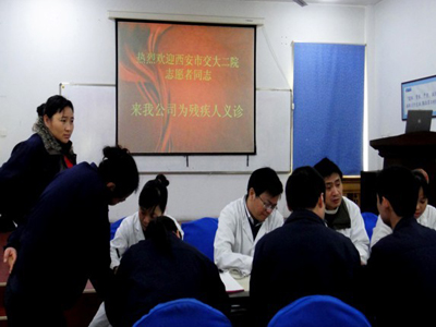 据介绍,这个残疾人工厂有270个残疾人,大多为先天性小儿麻痹后遗症和先天性聋哑人。到场的30余位残疾人,对此次我院的义诊献爱心活动,表示出热烈的欢迎和期待。志愿者首先给每人测了血压。接着,他们通过口语或文字的形式纷纷道出了自己身体各部位存在的不适,孙师元副教授和李亮医师进行检查后,均给予耐心的解答和指导。不知不觉几个小时过去了,从他们感激的眼神和纯真的脸上所现出的满意表情,我们知道我们不虚此行。