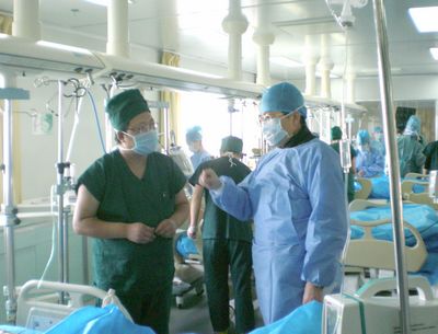 庆阳“11?16”重大交通事故受伤儿童的救治牵动着全国人民的心。17日10时50分接到国家卫生部及陕西省卫生厅通知,由我院派遣专家立即赴庆阳市人民医院协助救治受伤儿童。我院立即启动突发公共卫生事件预案,院长贺西京、副院长高亚指示,立即组织临床经验丰富、技术精湛的相关专家支援庆阳市人民医院,医务部、院办根据领导指示,立即通知重症医学科王国恩主任、神经外科周任副教授,因时间紧、任务重,两位专家来不及做任何准备,安排好临床工作后, 11时10分迅速轻装出发,贺西京院长亲自为专家送行。