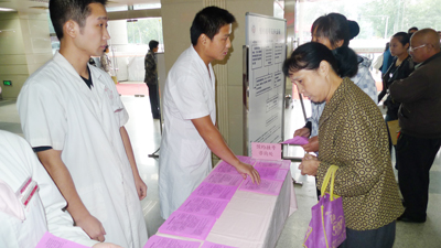 志愿者拿到预约挂号的宣传资料后分成两队,一部分志愿者在门诊大厅一楼的宣传处为患者发放宣传单和讲解,一部分志愿者进入各个病房为住院病人及家属进行相关的宣传活动。在活动过程中,许多病患都主动地上前询问志愿者关于预约挂号的具体操作步骤,志愿者们热情的为咨询者递上宣传单并耐心细致地为他们讲解。青年志愿者们用自己的青春和热情在实际活动中展现了我院青年人的良好社会形象。