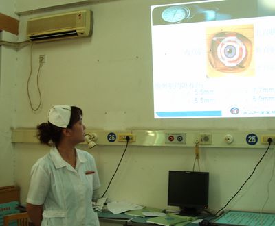 为积极响应三好一满意活动,继续深化优质护理工作,提高年轻护士的业务水平,眼科护理部按惯例于2011年6月30日星期四14时组织全科护士及实习护士进行了每月一次的护理讲座。本次护理讲座内容为《斜视患者的护理》《泪小管断裂患者的护理》,两位主讲老师均为年轻护士何玲、庾苗,她们图文并茂地为大家讲解了两种疾病的主要概要及术前、术后护理,大家积极发言,气氛热烈。最后护士长郭菊凤与副护士长何娜分别为此次讲座进行了总结性的点评并确定了下次讲课的时间及内容。
