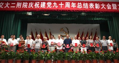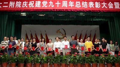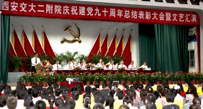 7月1日下午我院隆重召开建党90周年总结表彰大会。西安交通大学党委王小力常务副书记,颜虹校长助理,校组织部陈红常务副部长,校医学中心马兆明副主任和我院全体党委委员出席大会,受表彰的集体和个人,参加宣誓的新党员以及各党支部党员代表参加大会。校党委王小力常务副书记、院党委韦俊荣书记分别讲话,贺西京院长宣读表彰文件,巩守平副书记主持大会。