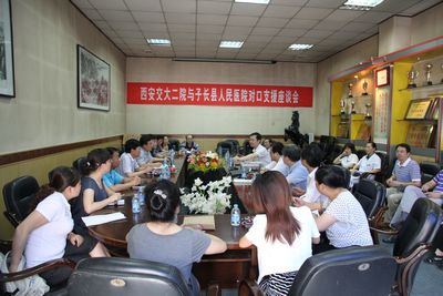 我院副院长高亚对我院的历史发展、管理、医疗特色技术和医疗特色服务等做了介绍;他强调对口支援子长县人民医院是我们的责任和义务,要求我院各科室主任与子长县人民医院主任以当地常见病、多发病的诊治为前提进行沟通,拿出帮扶的具体办法和方案,切实将合作落到实处。最后双方对口科主任进行了认真的一对一的沟通,就进一步的合作进行了商讨。