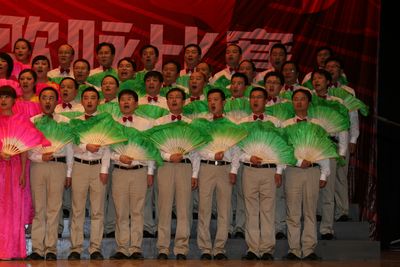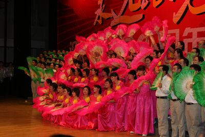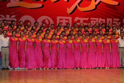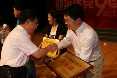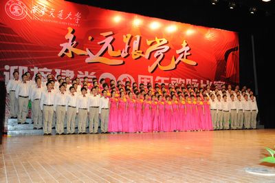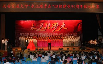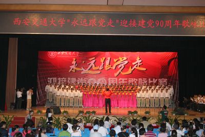 红歌献给党,祖国在心中。在党的生日来临之际,我院党委精心组织了由我院党员干部和教职员工119人参加的迎“七一”祖国颂大合唱。韦俊荣书记指挥,贺西京院长朗诵,李文典副院长领唱,其他院领导均带头参加,全体队员认真排练,用心歌唱,于6月10日代表我院参加了学校举行的“永远跟党走”迎接建党九十周年歌咏比赛,以一曲气势恢宏的《祖国颂》唱出了二院人的风采,受到各方一致好评,反响热烈,并取得了优异的成绩。
