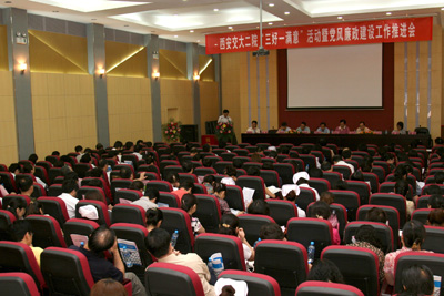 6月23日下午,我院在多功能厅召开“三好一满意”活动暨党风廉政建设工作推进会。全院各科室正副职、支部书记、护士长和部门工会主席近200人参加会议。会议隆重邀请华商报和陕西省电视台等社会媒体和记者公开对我院“三好一满意”活动和党风廉政建设工作进行监督,华商报总经理王朝阳和陕西电视台新闻部副主任史宝军出席会议并分别讲话。我院“三好一满意”活动领导小组常务副组长、院党委副书记、纪委书记巩守平做“三好一满意”活动暨党风廉政建设工作再动员报告,高亚副院长讲具体实施意见,贺西京院长做工作部署,李宗芳副院长、刘原副院长出席会议,韦俊荣书记主持会议。