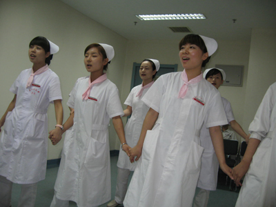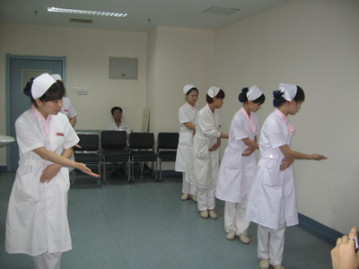 为了进一步推进优质护理服务和“三好一满意”活动,2011年6月2日下午,门诊导医以护理礼仪竞赛的形式做了一场精彩的汇报演出。全体导医参加了活动,护理部杨慧云主任、急诊王利总护士长和门诊部副主任王丽娟出席了活动。