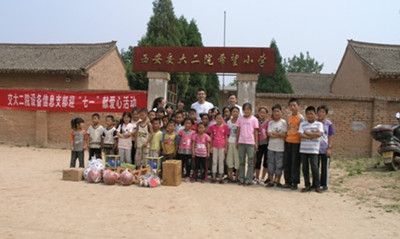 作为对党的90周年生日的献礼,我院设备信息支部在支部书记杨党忠、支委孟天华、陈鹏岗的精心组织下,带领支部近20名党员和积极分子前往蓝田县金联希望小学进行了主题为“迎‘七一’献爱心”的支部活动,为革命老区的贫困学生送去图书、文具、体育和教学用品。我院副院长李宗芳教授和学生党总支许明章书记带领部分学生代表一起参加了本次活动。