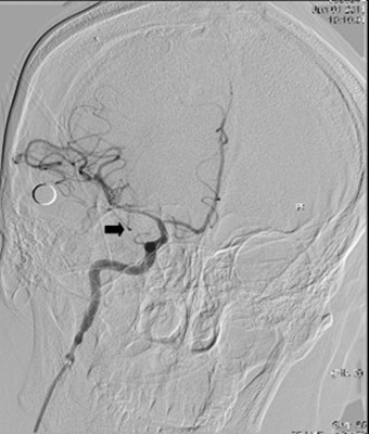 图2:取栓后见右侧颈内动脉开通,大脑前及大脑中动脉显影良好