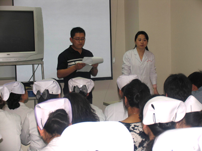 门诊部主任吴世学教授首先回顾了我院的历史沿革、发展状况。并讲道,随着医院规模扩大,门诊量不断攀升,患者在就诊过程中遇到了一些问题和不便。为方便患者就诊,缩短就诊时间,开展以引导患者就诊、解答患者疑问为主要内容的此项活动,希望作为医院新生力量的团员青年们继承我院光荣传统,发挥共青团生力军作用,服务医院、服务患者。团委书记、门诊部副主任王丽娟对此项活动可能出现的问题作了详细解释和说明,希望志愿者们在实际工作中要耐心、细心、热心的为每位患者解答在就诊中遇到的问题,真正从细节处为患者提供更温馨、更贴心的服务,树立我院在社会上的良好形象。门诊部钟小英老师为志愿者们讲解了医疗综合大楼门诊科室分布状况、如何根据患者口述为患者分诊等具体问题。
